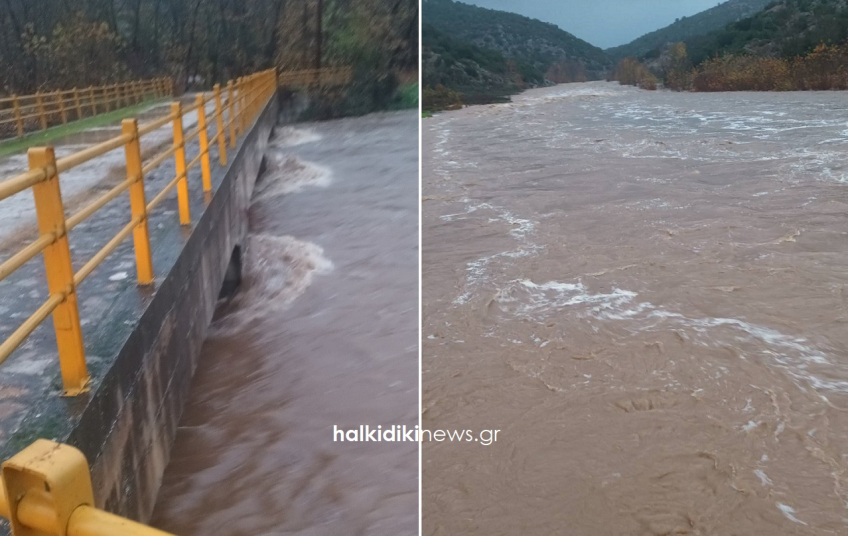 «Θέλει μεγάλη προσοχή! Τα νερά ανέβηκαν πολύ γρήγορα και έφτασαν σχεδόν στη γέφυρα» τονίζουν κάτοικοι της περιοχής στο halkidikinews.gr που παρακολουθούν με αγωνία την κατάσταση.