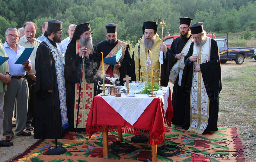 Αγιασμός εψάλη από τον Σεβασμιότατο Μητροπολίτη Ιερισσού, Αγίου Όρους και Αρδαμερίου κ.κ. Θεόκλητο και τον Πρωτοσύγκελο Αρχιμανδρίτη Χρυσόστομο Μαϊδώνη, ενόψει της έναρξης των εργασιών ανέγερσης του Ιερού Ναού του Αγίου Κοσμά του Αιτωλού, στην ομώνυμη Ιερά Μονή της Αρναίας.