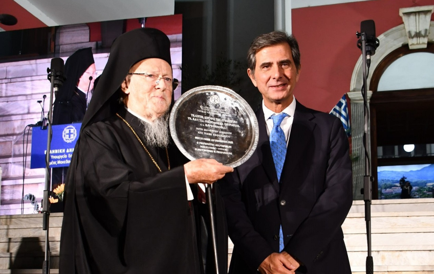 Ο Υφυπουργός Εσωτερικών κάλεσε τον Οικουμενικό Πατριάρχη να αποκαλύψουν μαζί την μαρμάρινη πλάκα λέγοντας χαρακτηριστικά:
