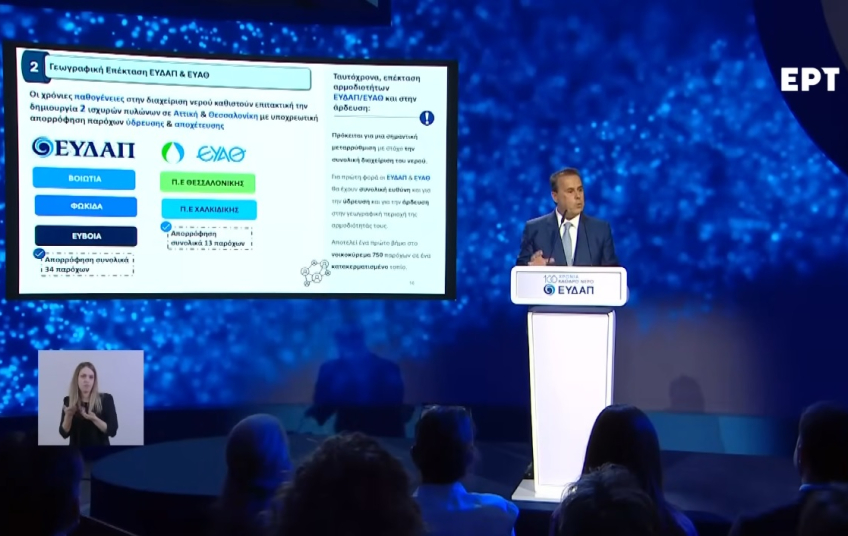 Όπως εξήγγειλε, ο ΥΠΕΝ η επέκταση της ΕΥΔΑΠ και της ΕΥΑΘ σε Βοιωτία και Χαλκιδική αντίστοιχα, διασφαλίζει μία συντονισμένη κοινή διαχείριση που εξασφαλίζει διαλειτουργικότητα και αποτελεσματικότητα. Ο υπουργός ξεκαθάρισε ότι ίση έμφαση με την ύδρευση θα δοθεί και στην άρδευση για τους αγρότες ενώ τόνισε ότι αυτή είναι η πλέον βιώσιμη, αποτελεσματική και βέλτιστη λύση για την αντιμετώπιση της λειψυδρίας αλλά και των απωλειών που φθάνουν σε πολλές περιπτώσεις ακόμα και σε ποσοστό 50%. Όπως είπε, είναι εξαιρετικά σημαντικό να νοικοκυρευτεί ο κατακερματισμός των παρόχων νερού, ενώ με αυτές τις δύο πιλοτικές επεκτάσεις από τους 750, ο αριθμός τους θα μειωθεί στους 700. Μάλιστα, ξεκαθάρισε ότι όλες οι προσπάθειες γίνονται προκειμένου να μη χρειαστεί να μπουν περιορισμοί στην κατανάλωση.