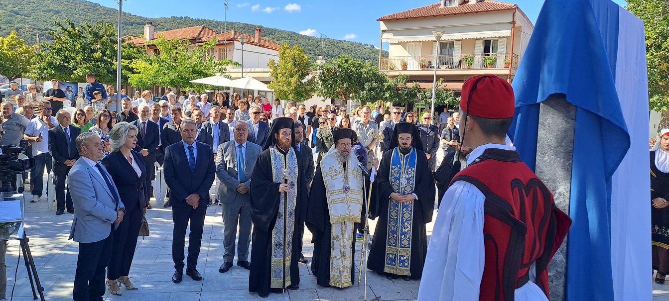 Νωρίτερα τελέστηκε Δοξολογία στον Ι.Ν. Κοιμήσεως της Θεοτόκου, χοροστατούντος του Σεβασμιοτάτου Μητροπολίτου Ιερισσού, Αρδαμερίου και Αγίου Όρους, κ.κ. Θεόκλητου κι αμέσως μετά Επιμνημόσυνη Δέηση στον χώρο των αποκαλυπτηρίων.