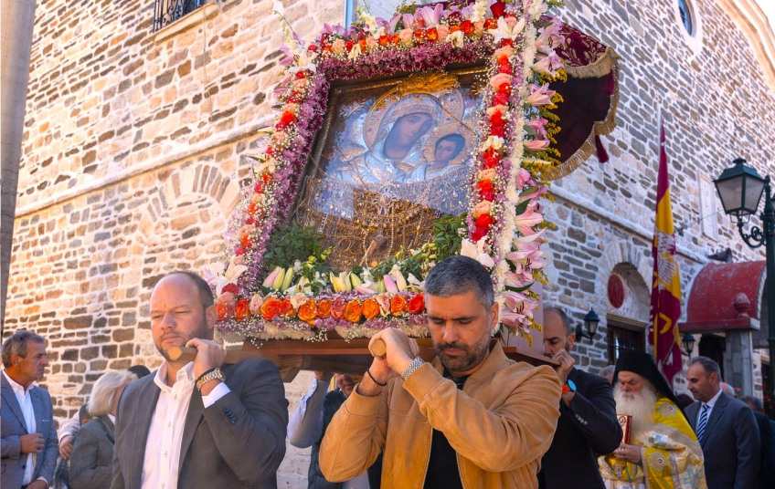 Την παραμονή της εορτής τελέστηκε Μεγάλος Πανηγυρικός Εσπερινός μετ’ αρτοκλασίας, ενώ ανήμερα της εορτής τελέστηκε η Πανηγυρική Θεία Λειτουργία. Ακολούθησε η περιφορά της Ιεράς Εικόνας στους δρόμους του χωριού, συνοδεία ιερέων, τοπικών αρχόντων και πλήθους πιστών, μέσα σε κλίμα βαθιάς συγκίνησης και ευλάβειας.