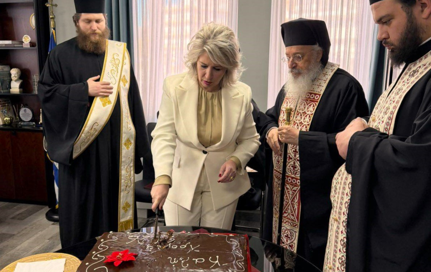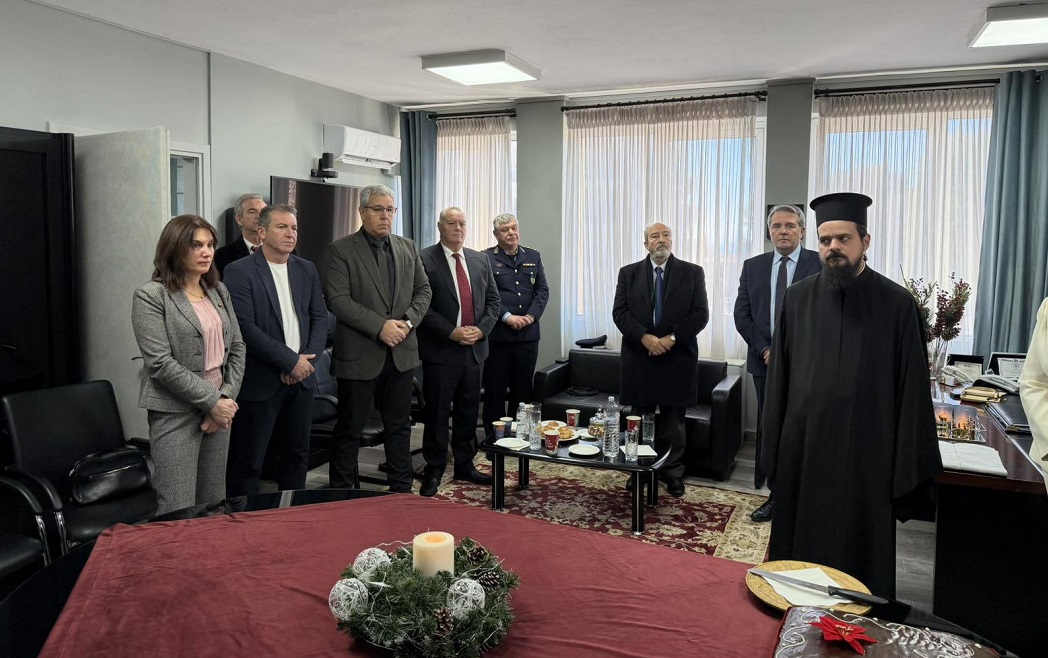 Ακολούθησε η πρωτοχρονιάτικη δεξίωση και η καθιερωμένη κοπή της βασιλόπιτας στο Διοικητήριο της Περιφερειακής Ενότητας Χαλκιδικής.