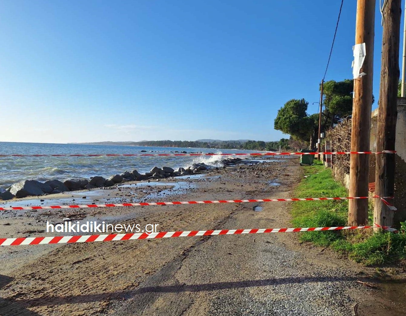 Προβλήματα καταγράφονται και στο κεντρικό παραλιακό μέτωπο της Νικήτης, όπου έχουν σημειωθεί σπασμένα διαζώματα και φθορές σε πεζοδρόμια. Σε αρκετά σημεία έχουν συσσωρευτεί άμμος και μικρά βότσαλα, ενώ παρατηρούνται και λιμνάζοντα νερά.
