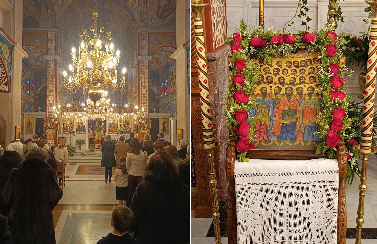 Στην Πανηγυρική Θεία Λειτουργίας ιερούργησε ο Σεβασμιώτατος Μητροπολίτης Ιερισσού, Αγίου Όρους και Αρδαμερίου κ.κ. Θεόκλητος, ο οποίος στο κήρυγμά του αναφέρθηκε στο σθένος των Μαρτύρων της Σεβάστειας.