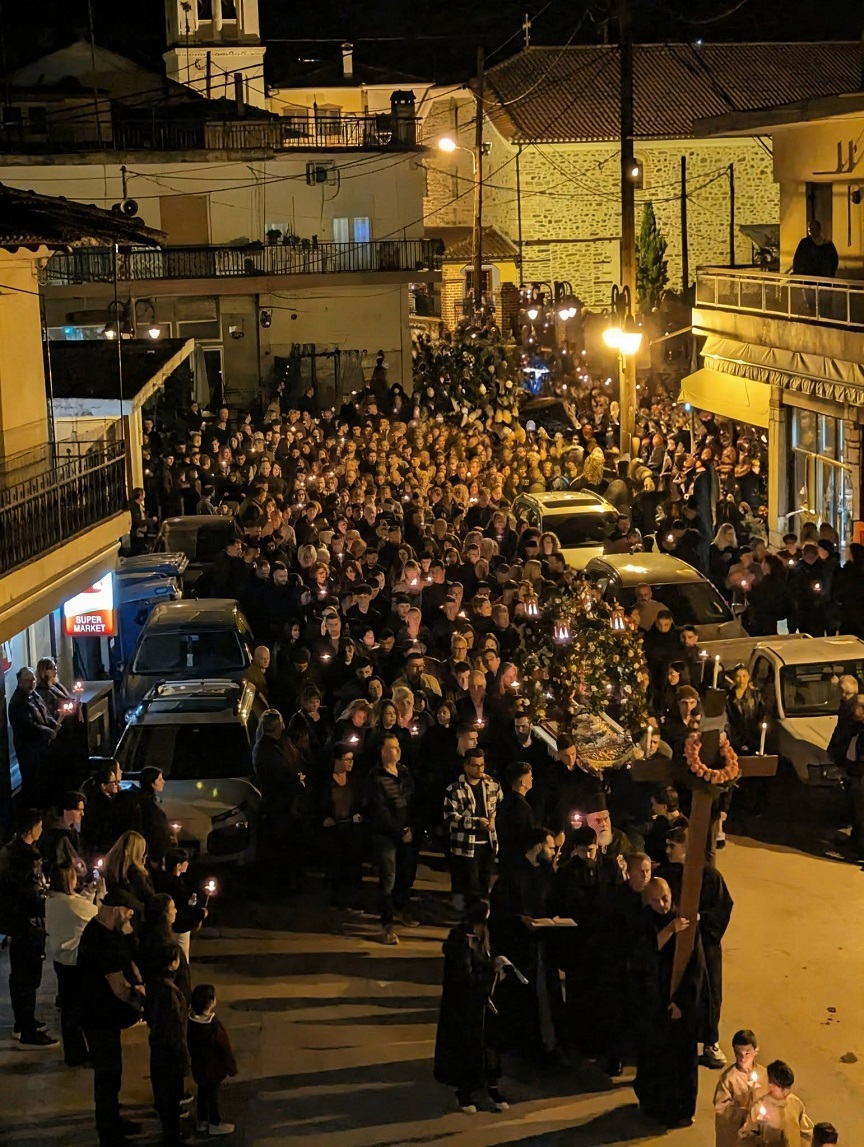 Μέσα σε ατμόσφαιρα βαθιάς συγκίνησης και θρησκευτικής ευλάβειας τελέστηκε το βράδυ της Μεγάλης Παρασκευής η περιφορά του Επιταφίου στον Πολύγυρο, πρωτεύουσα της Χαλκιδικής.