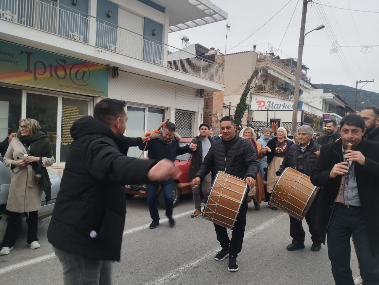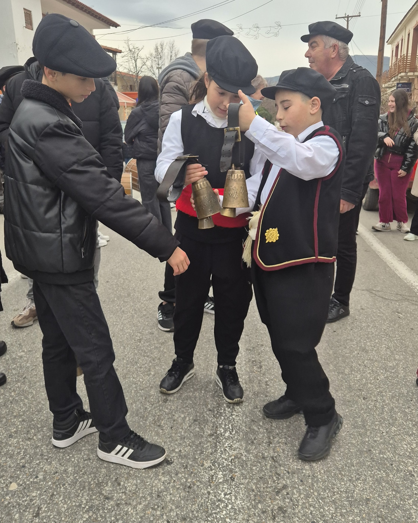 Από νωρίς το μεσημέρι, οι δρόμοι του χωριού γέμισαν με ζουρνάδες, νταούλια και κλαρίνα, καθώς πραγματοποιήθηκε η περιφορά των κουδουνιών, ένα από τα πιο χαρακτηριστικά και δυναμικά στοιχεία του εθίμου. Ντόπιοι και επισκέπτες ακολούθησαν τη μουσική, με τους συμμετέχοντες να κρατούν κοντάρια στολισμένα με λουκάνικα και πορτοκάλια, εικόνες που παραπέμπουν σε παλαιότερες εποχές, αφθονία και καλοτυχία για τη νέα χρονιά.
