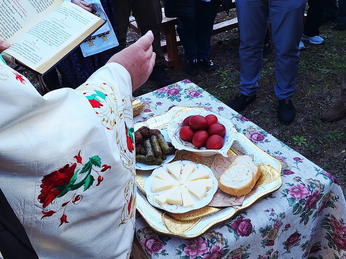 Το πρωί τελέστηκε η πανηγυρική Θεία Λειτουργία στο παρεκκλήσι του Αγίου Γεωργίου, μέσα σε ένα καταπράσινο σκηνικό που έσφυζε από ζωή.