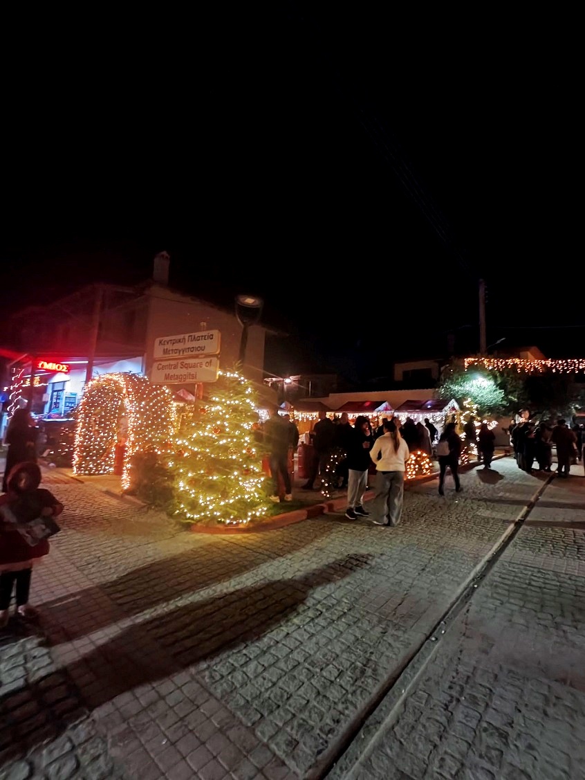 Λουκουμάδες που μοσχομύριζαν, γέλια που γέμιζαν την πλατεία, χριστουγεννιάτικη αγορά και λίγη… παιδική σκόνη μαγείας έκαναν τη νύχτα ξεχωριστή. Γιατί κάποιες στιγμές είναι φτιαγμένες για όνειρα και στο Μεταγγίτσι, ένα μικρό αλλά τόσο δραστήριο χωριό της Σιθωνίας, τα όνειρα βρίσκουν πάντα χώρο.