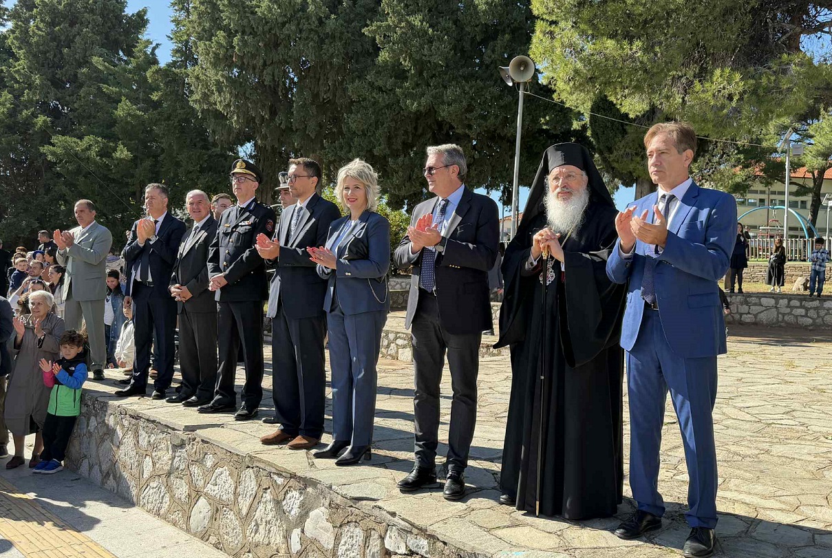 Μετά το τέλος της δοξολογίας ακολούθησε επιμνημόσυνη δέηση και κατάθεση στεφάνων στο μνημείο των ηρώων και μαθητική παρέλαση.