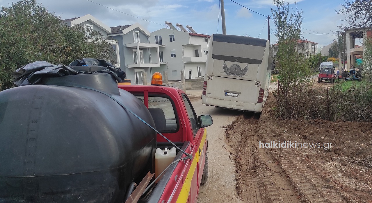 Ένα λεωφορείο του ΚΤΕΛ που εκτελούσε το δρομολόγιο Θεσσαλονίκη - Σάρτη βούλιαξε σήμερα σε ένα χαντάκι στη Νικήτη, που είχε δημιουργηθεί από εργασίες ηλεκτροδότησης και υπογειοποίησης του ΔΕΔΔΗΕ.