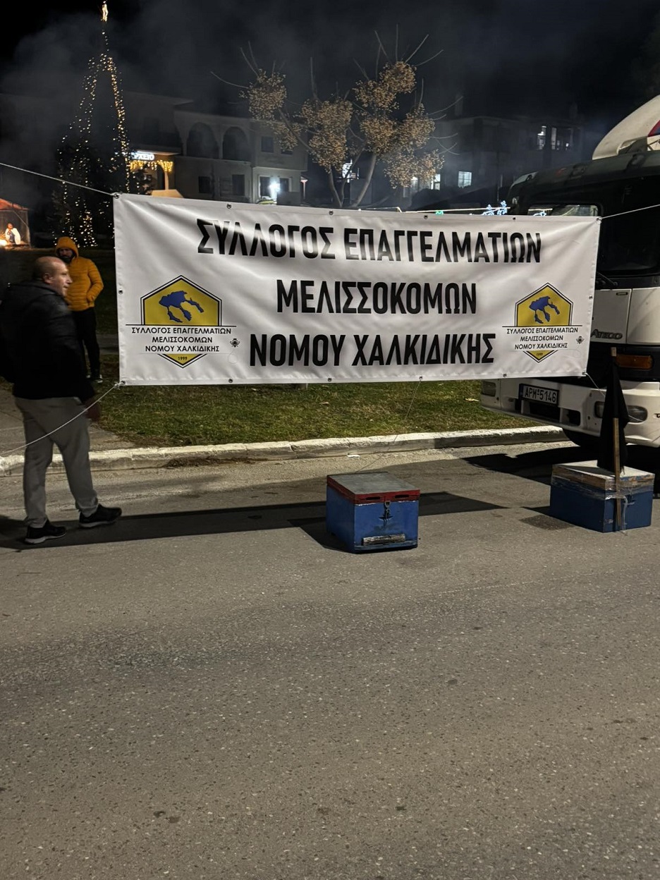Στο πλαίσιο των κινητοποιήσεων, οι μελισσοκόμοι της Χαλκιδικής συντάσσονται με τους αγρότες του νομού, συμμετέχοντας και στο μπλόκο του κόμβου της Νέας Τρίγλιας, στέλνοντας κοινό μήνυμα πίεσης προς την κυβέρνηση.
