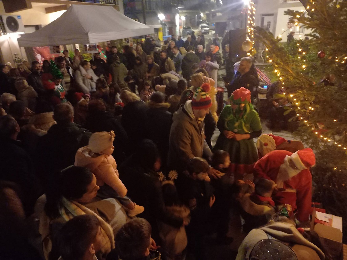 Η βραδιά ξεκίνησε με την παραδοσιακή πατινάδα στα σοκάκια, όπου η Χορωδία Παλαιοχωρίου έψαλε κάλαντα δημιουργώντας μια μοναδική χριστουγεννιάτικη ατμόσφαιρα. Λίγο αργότερα, το πλήθος συγκεντρώθηκε γύρω από το δέντρο για τη μεγάλη στιγμή: τη φωταγώγηση, που συνοδεύτηκε από εντυπωσιακά πυροτεχνήματα και θερμά χειροκροτήματα.