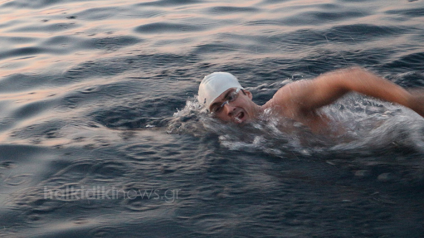 Η πρώτη διάπλευση πήγε πολύ καλά για τον ίδιο, αφού κατάφερε να φθάσει στην Καλλιθέα της Κασσάνδρας σε 5 ώρες και 43 λεπτά! Χωρίς να σταματήσει έκανε στροφή για να επιστρέψει και πάλι στη Νικήτη κολυμπώντας τα ίδια χιλιόμετρα.
