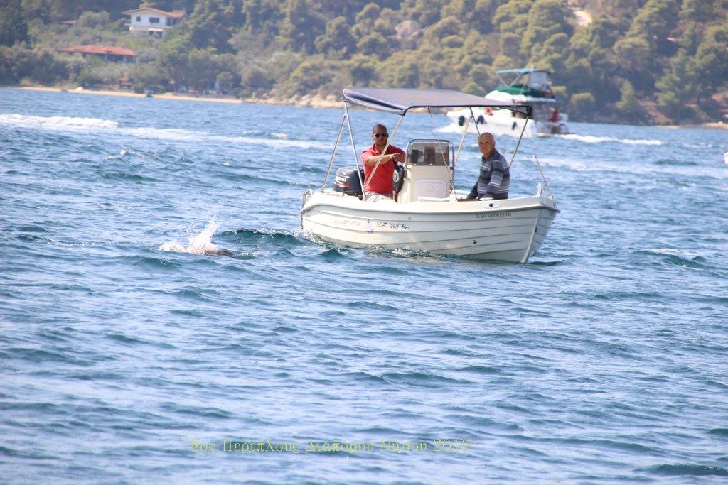 Νωρίς το πρωί της Κυριακής ο πρόεδρος του Συλλόγου, Αστέριος Μυλωνάς έδωσε την εκκίνηση από την παραλία της Βουρβουρούς και 20 κολυμβητές έπεσαν στη θάλασσα για να κάνουν τον περίπλου του Διαπόρου, απόσταση 10 χιλιομέτρων.
