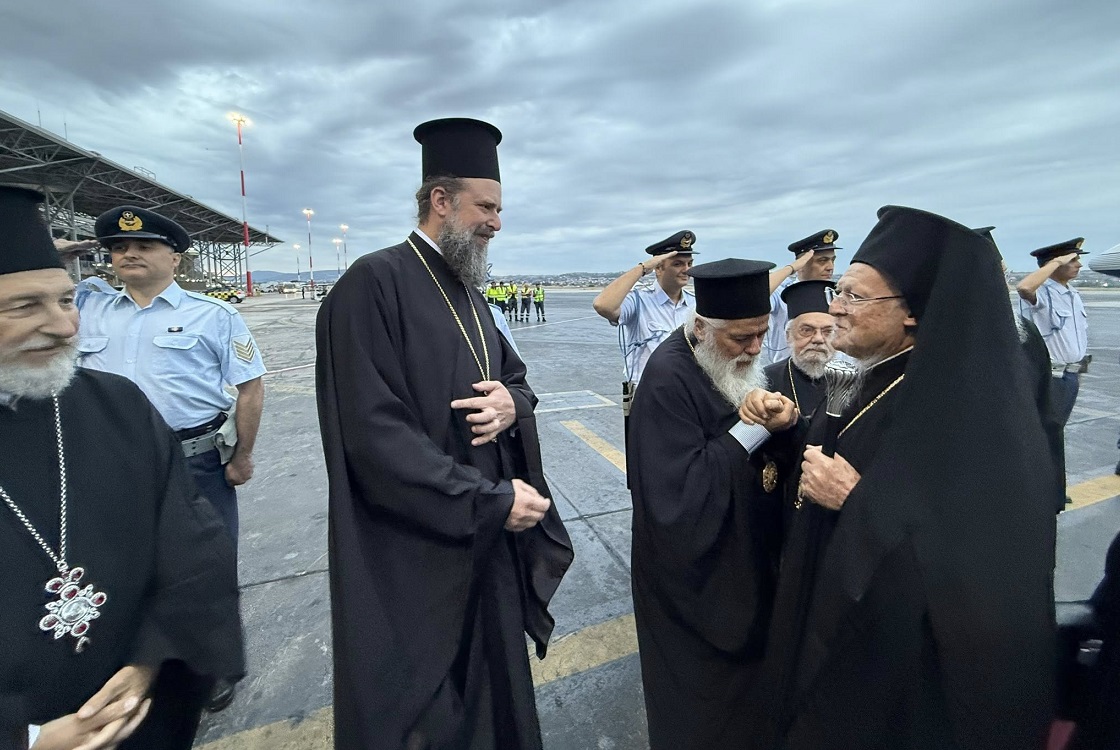 Ο κ. Βαρθολομαίος, μετά της συνοδείας του, έφτασε σήμερα το πρωί στο αεροδρόμιο "Μακεδονία" και τον υποδέχθηκαν ο επιχώριος Μητροπολίτης Κασσανδρείας κ. Νικόδημος και οι Σεβασμιώτατοι Μητροπολίτες Βρυούλων κ. Παντελεήμων, Νεαπόλεως και Σταυρουπόλεως κ. Βαρνάβας, Θεσσαλονίκης κ. Φιλόθεος καθώς και οι Θεοφιλέστατοι Επίσκοποι Ρηγίου κ. Ειρηναίος και Αμορίου κ. Νικηφόρος.