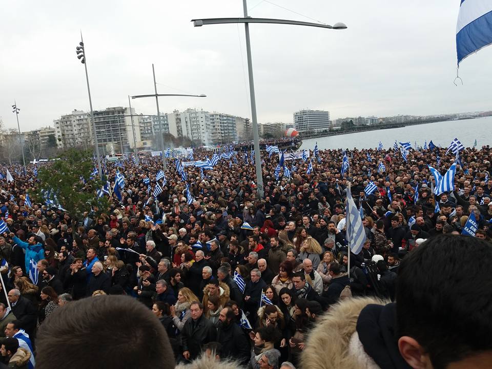 Χιλιάδες κόσμου κατέκλυσαν στην παραλιακή λεωφόρο της Θεσσαλονίκης για να συμμετάσχουν στο συλλαλητήριο για το όνομα των Σκοπίων.