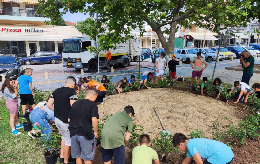 Παιδικά χεράκια φύτεψαν δέντρα και λουλούδια στην κεντρική πλατεία της Ν. Καλλικράτειας στο πλαίσιο μίας συμβολικής δράσης με περιβαλλοντικό μήνυμα που διοργάνωσε ο Δήμος Ν. Προποντίδας.