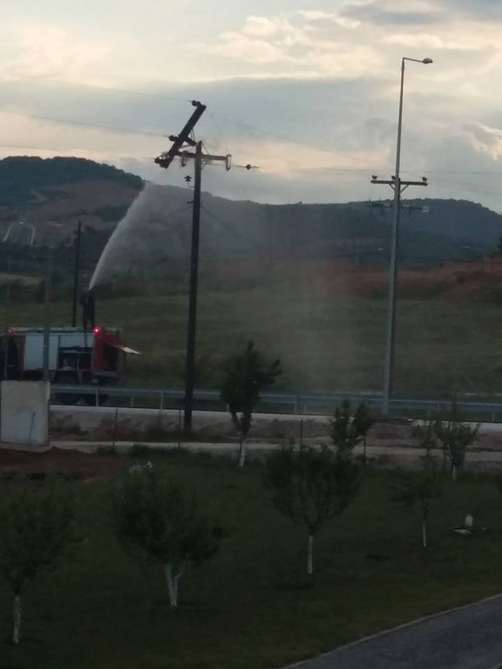 Φωτιά σε κολόνα της ΔΕΗ υψηλής τάσεως, ξέσπασε αργά το απόγευμα της Τετάρτης στην έξοδο της Αρναίας προς Στανό στον κόμβο της Περιφερειακής.