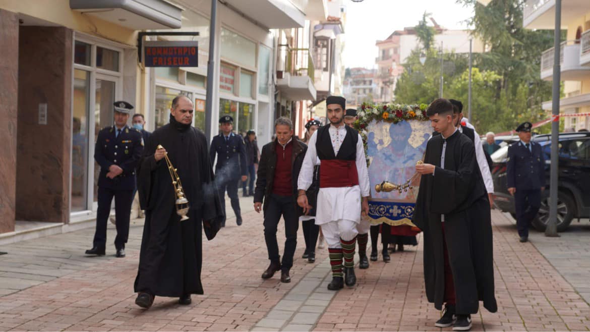 Μετά τη Θ. Λειτουργία έγινε η λιτανεία της εικόνας του Αγίου Νικολάου στους δρόμους του Πολυγύρου.