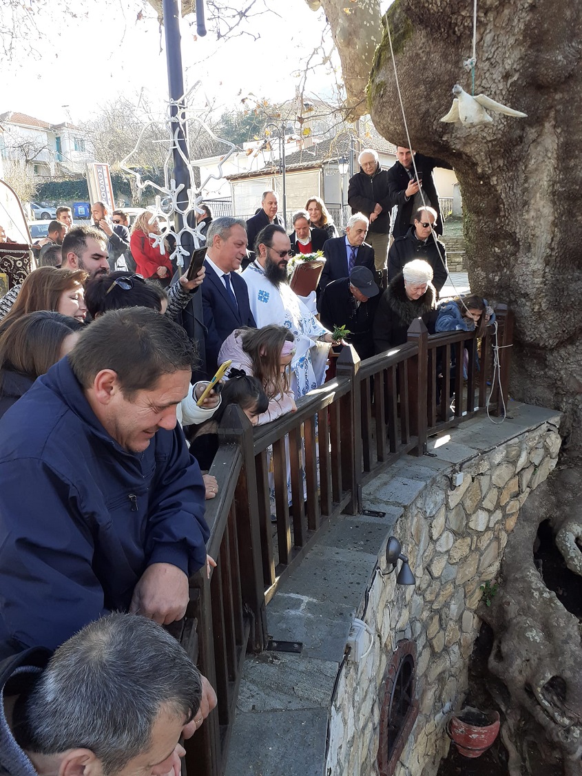 Για μια ακόμη χρονιά τηρήθηκε το έθιμο και τρεις μαθητές του χωριού βούτηξαν κατά τον καθαγιασμό των υδάτων, μέσα στην πηγή που βρίσκεται στις ρίζες του υπεραιωνόβιου πλάτανου της πλατείας.