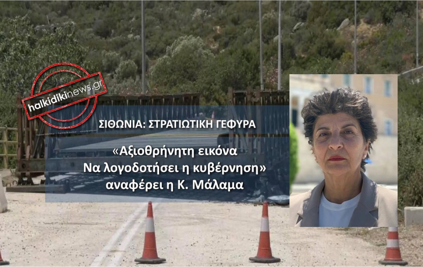 Σφοδρή κριτική ασκεί η βουλευτής Χαλκιδικής, Κυριακή Μάλαμα, για την κατάσταση της προσωρινής στρατιωτικής γέφυρας στην Τορώνη, έξι μήνες μετά την κατάρρευση της αρχικής γέφυρας λόγω της κακοκαιρίας «Bora».