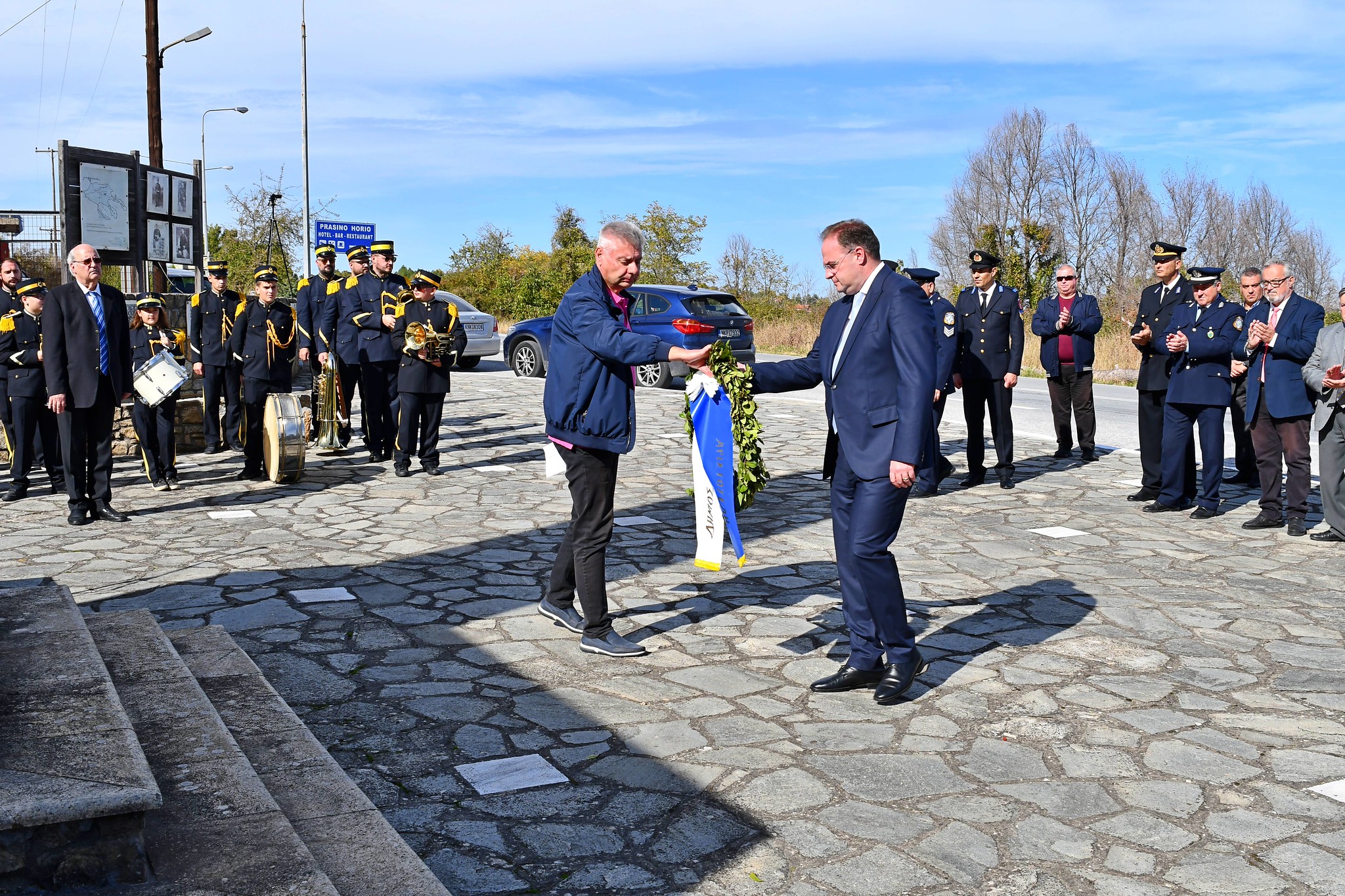 Στο Μνημείο Απελευθέρωσης, στην είσοδο της πόλης, τελέστηκε Τρισάγιο και κατατέθηκαν στεφάνια από τις αρχές και μαθητές των σχολείων.
