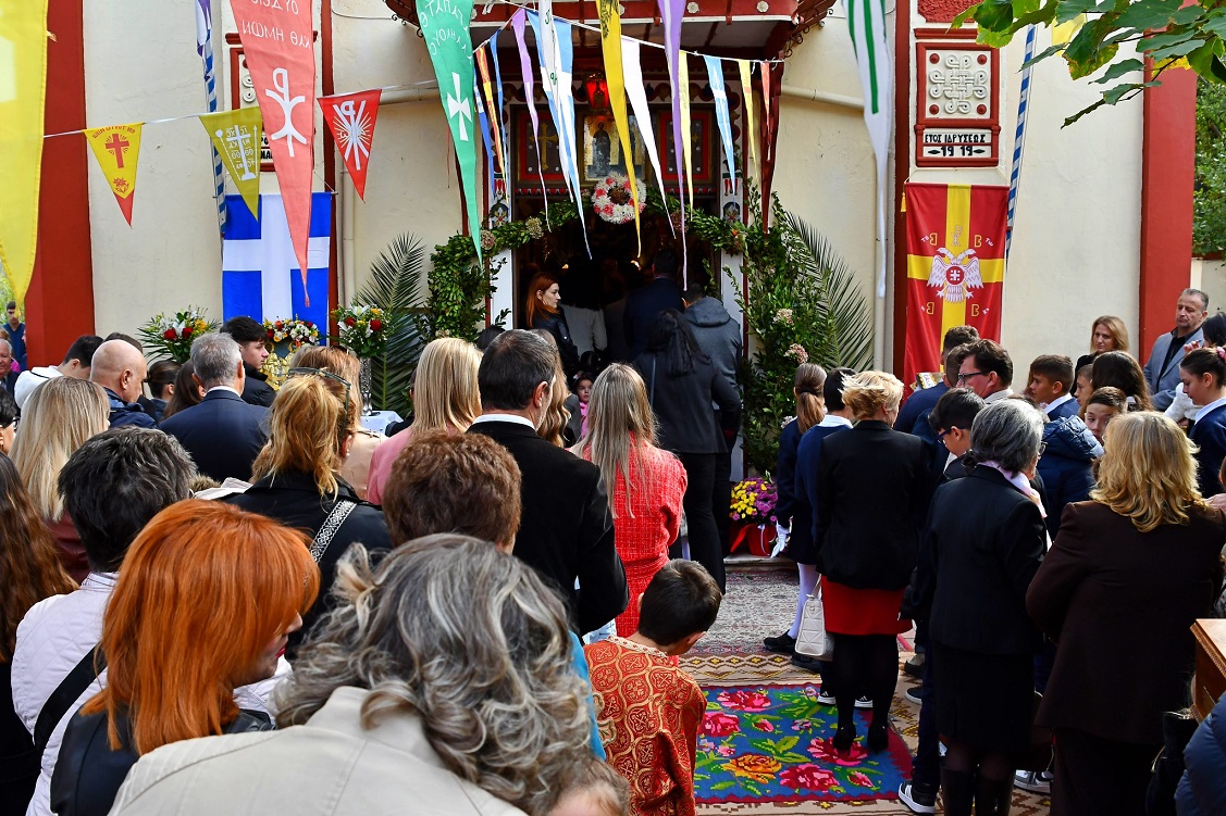 Οι κάτοικοι και οι επισκέπτες συνόδευσαν την πομπή με σημαίες και ψαλμωδίες, τιμώντας τη μνήμη των ηρώων που απελευθέρωσαν την πόλη.