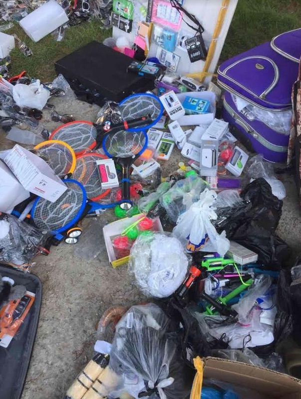 Συνολικά βρέθηκαν στην οικία τους και κατασχέθηκαν 5.903 προϊόντα παρεμπορίου και απομιμητικά προϊόντα, τα οποία αφορούν σε γυαλιά ηλίου, βραχιόλια, παιχνίδια, αξεσουάρ κινητών τηλεφώνων, ηλεκτρικά είδη και άλλα αντικείμενα.