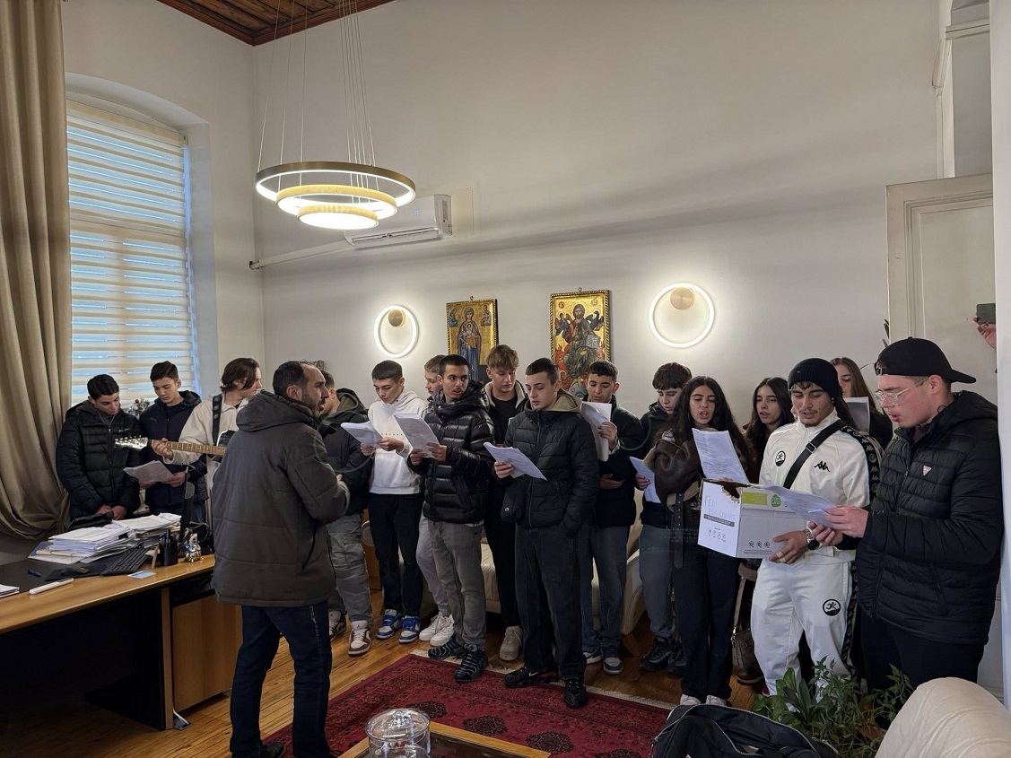 Μια όμορφη και ζεστή εορταστική νότα πλημμύρισε σήμερα το Δημαρχείο Κασσάνδρας, καθώς μαθητές του Λυκείου Κασσάνδρειας το επισκέφθηκαν για να ψάλουν τα χριστουγεννιάτικα κάλαντα, μεταφέροντας το πνεύμα των Χριστουγέννων και ένα αισιόδοξο μήνυμα ελπίδας.