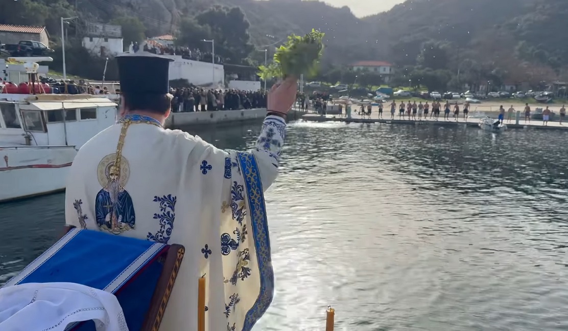 Οι Αγιονικολάτες τιμούν κάθε χρόνο το έθιμο και κατεβαίνουν στον Όρμο Παναγίας, ενώ φέτος δύο μικρά παιδιά και τέσσερις μεγάλοι έπεσαν στα παγωμένα νερά για να πιάσουν το Σταυρό και να πάρουν την ευλογία.