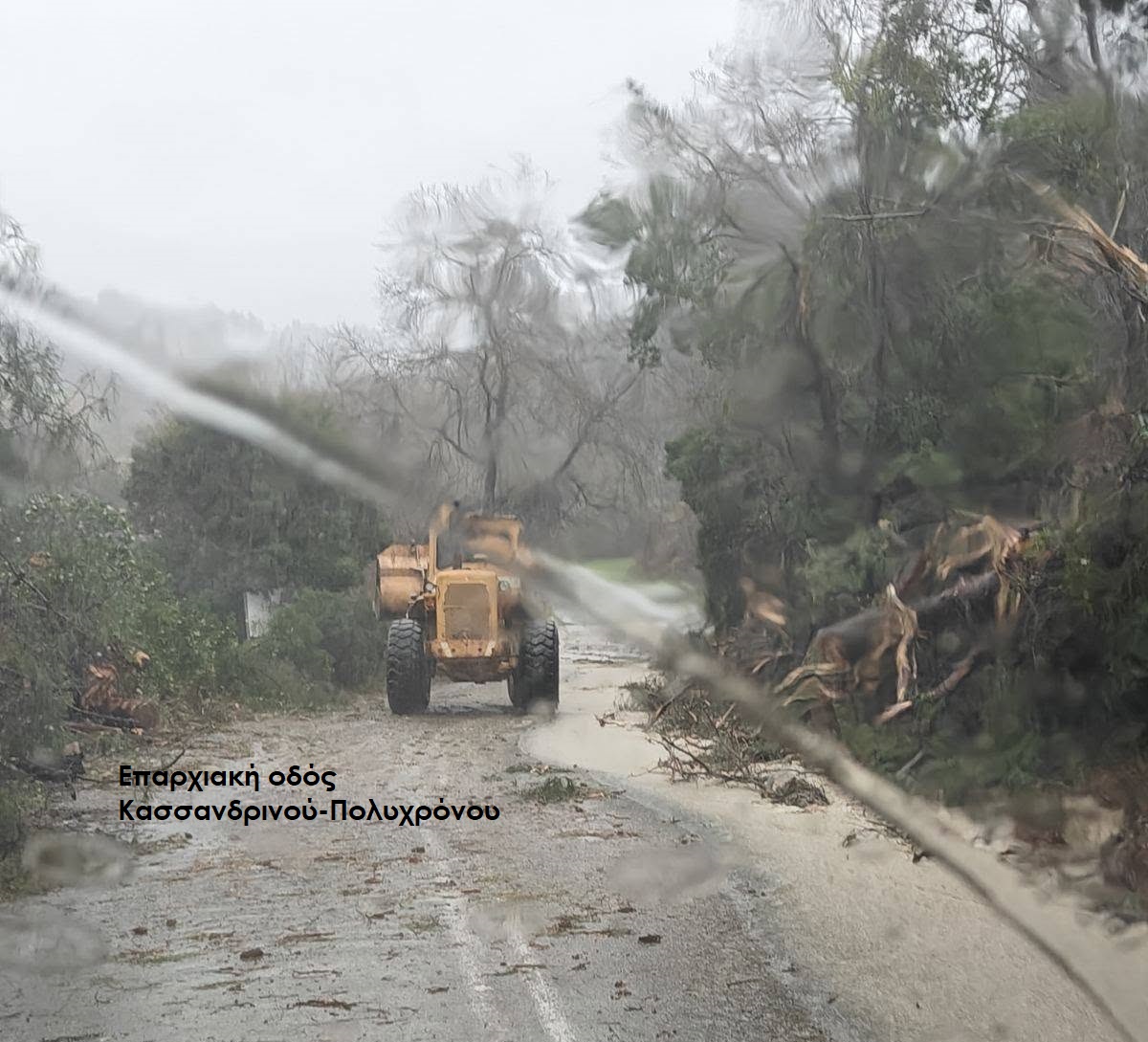 Στη Σιθωνία η κυκλοφορία έχει αποκατασταθεί από τις πτώσεις πεύκων στο οδόστρωμα, όπως και η κυκλοφορία των οχημάτων στον δασικό δρόμο Κασσανδρινού - Πολυχρόνου, ο οποίος είχε τεθεί προσωρινά εκτός κυκλοφορίας λόγω πτώσης δέντρου και δυσμενών καιρικών συνθηκών.
