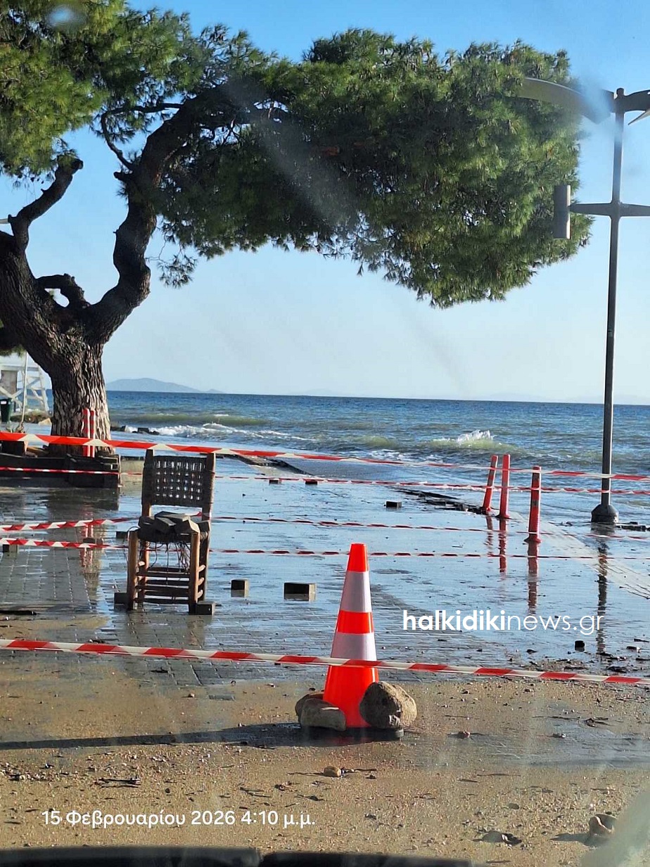Προβλήματα καταγράφονται και στο κεντρικό παραλιακό μέτωπο της Νικήτης, όπου έχουν σημειωθεί σπασμένα διαζώματα και φθορές σε πεζοδρόμια. Σε αρκετά σημεία έχουν συσσωρευτεί άμμος και μικρά βότσαλα, ενώ παρατηρούνται και λιμνάζοντα νερά.
