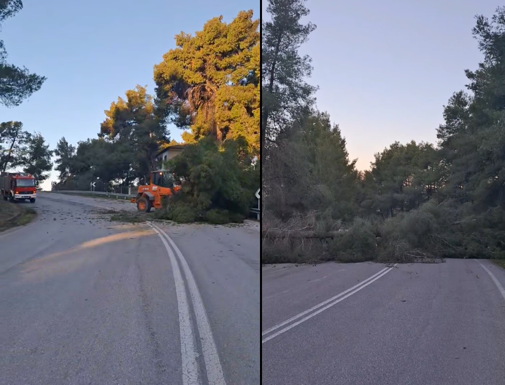 Πτώση τριών δέντρων σημειώθηκε κατά τη διάρκεια της νύχτας στην Κασσάνδρα Χαλκιδικής, εξαιτίας των ισχυρών ανέμων που έπληξαν την περιοχή. Το περιστατικό καταγράφηκε στην επαρχιακή οδό Κασσάνδρειας -Φούρκας, στη θέση «Ζαναέ», όπου η κυκλοφορία διακόπηκε προσωρινά για λόγους ασφάλειας.