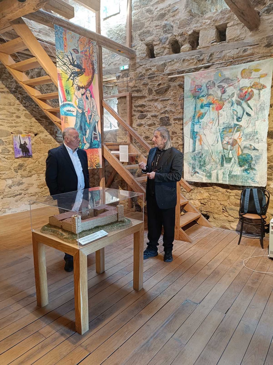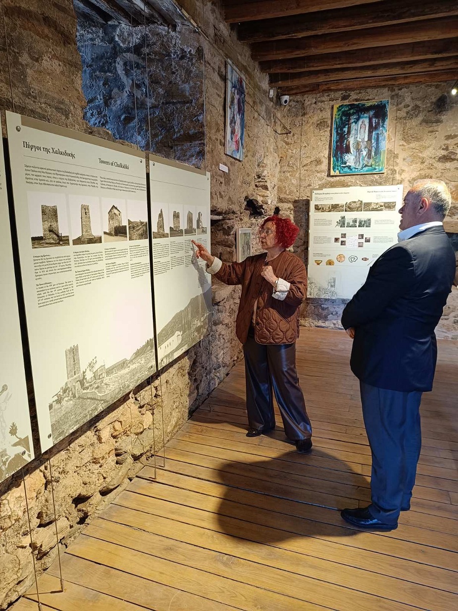 Ο Βουλευτής ξεναγήθηκε στην εικαστική έκθεση «Γεωγραφία της Μνήμης» από τον ίδιο τον Κρητικό δημιουργό της, Σταύρο Παναγιωτάκη, ενώ για την πλούσια ιστορία του μνημείου ενημερώθηκε από την αρχαιολόγο της Εφορείας Αρχαιοτήτων Χαλκιδικής και Αγίου Όρους, κα Όλγα Ιασωνίδου. Τον κ. Γιώργο συνόδευσε καθ' όλη τη διάρκεια της επίσκεψης ο Αντιδήμαρχος κ. Σακελλάρης.
