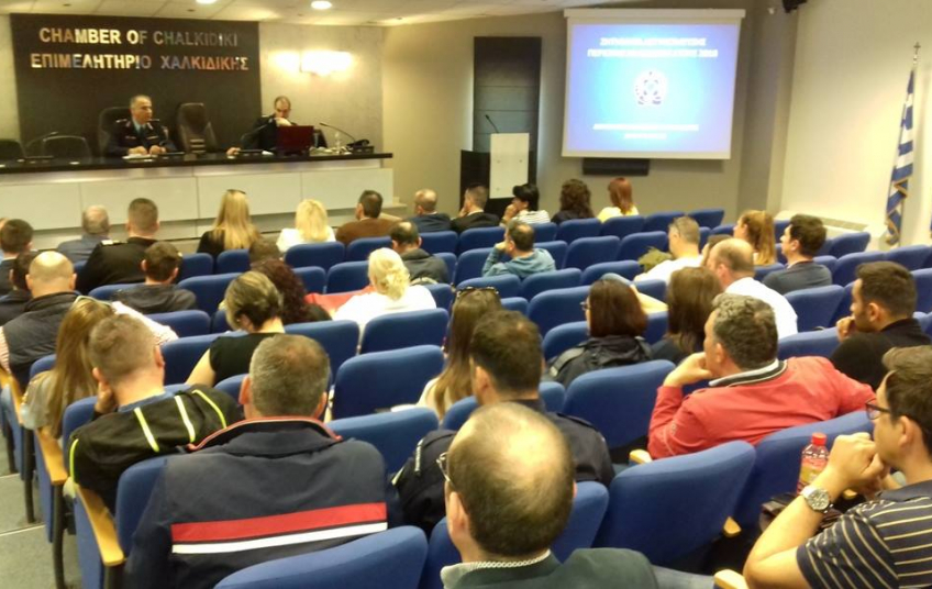 Σύσκεψη για ενημέρωση των φορέων και επιχειρήσεων του νομού μας επί των θεμάτων λειτουργίας και συναφών παραβάσεων των καταστημάτων υγειονομικού ενδιαφέροντος – ξενοδοχείων κλπ., εν’ όψει της έναρξης της θερινής περιόδου και των επικείμενων προβλημάτων, πραγματοποιήθηκε στο Συνεδριακό Κέντρο του Επιμελητηρίου Χαλκιδικής κατόπιν πρόσκλησης του Αστυνομικού Δ/ντη Χαλκιδικής, Ταξίαρχου κου Αθανάσιου Μπασιούκα.