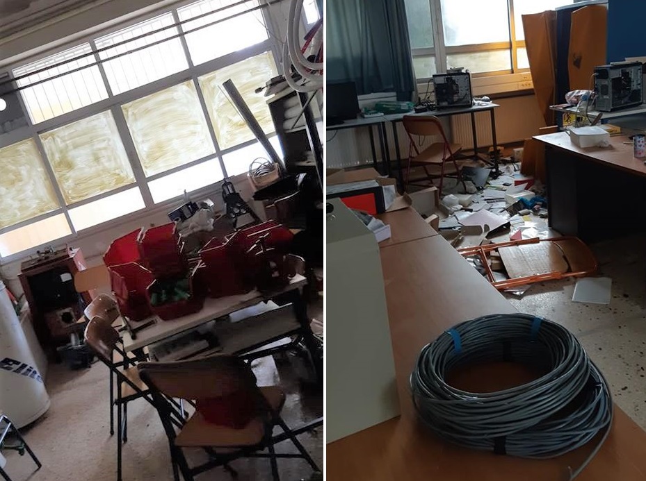 Εργαστήρια λεηλατημένα, διαλυμένοι υπολογιστές, σπασμένες καρέκλες, ακαθαρσίες και βρώμα παντού, τουαλέτες χωρίς πόρτες είναι η εικόνα που αντίκρισαν τη Δευτέρα το πρωί εκπαιδευτικοί και μαθητές. Η κατάληψη στο σχολείο ξεκίνησε στις 29 Οκτωβρίου και διήρκεσε μέχρι την Κυριακή 10 Νοεμβρίου.