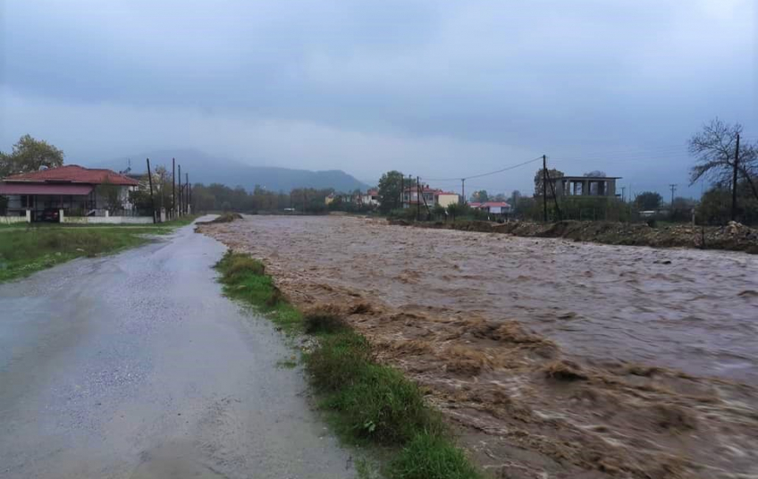 Στη Μεγάλη Παναγία το ρέμα που περνά από το χωριό υπερχείλισε.