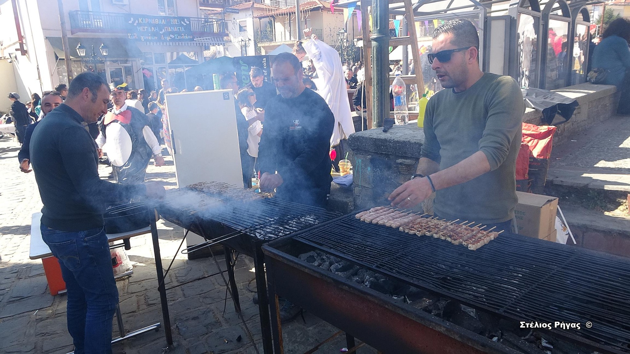 Ο κόσμος που βρέθηκε στην πλατεία διασκέδασε, κεράστηκε με κρασί και χόρεψε στους ρυθμούς του καρναβαλιού.