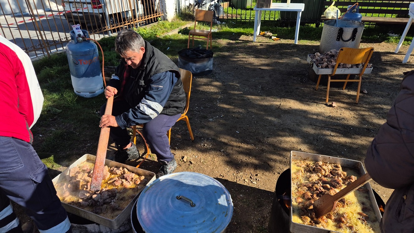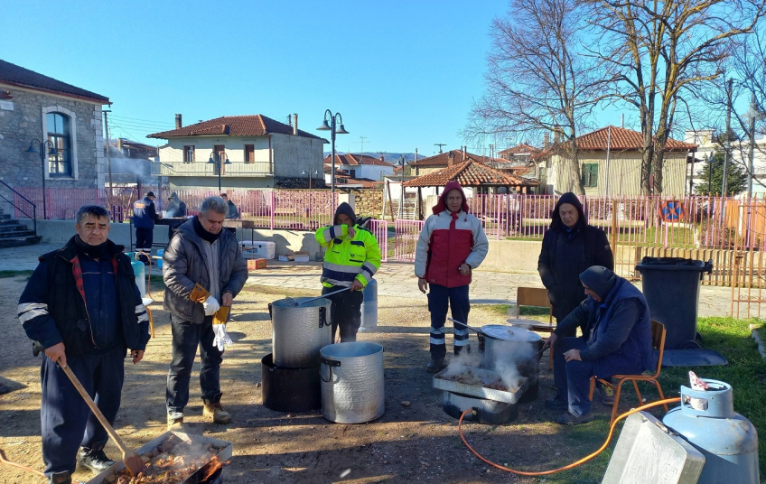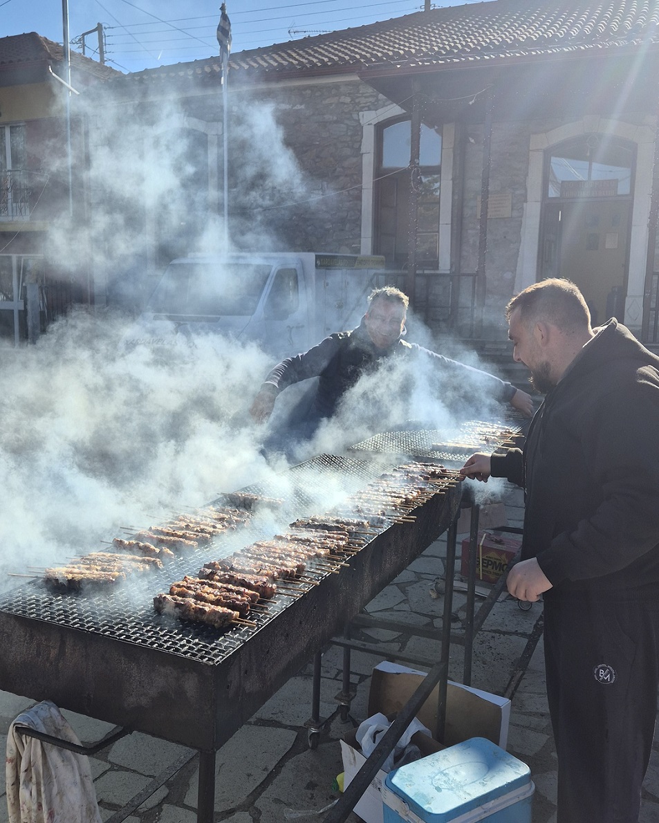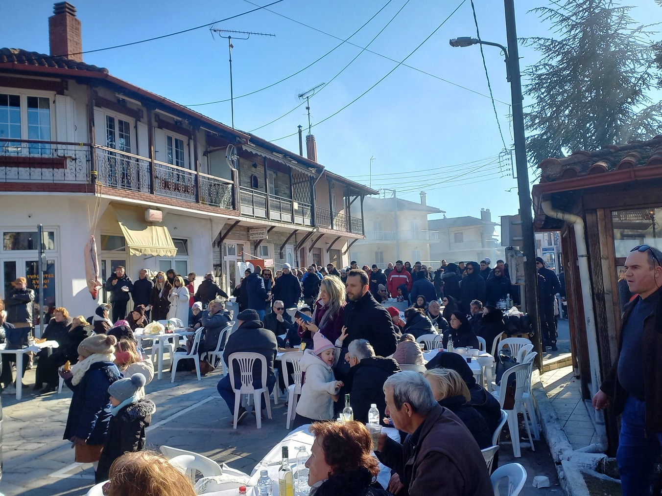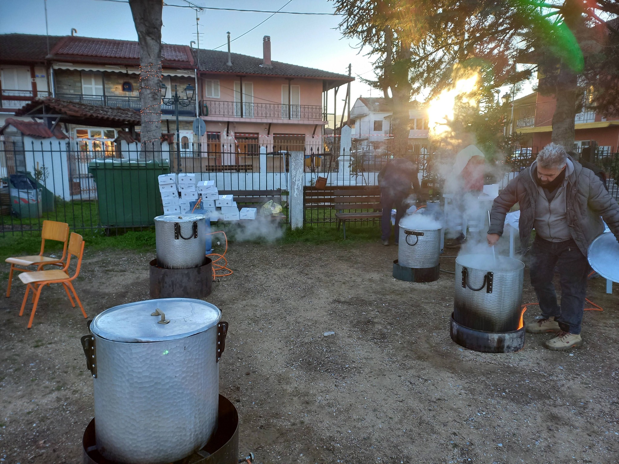 Η εικόνα μιλά από μόνη της: μεγάλα καζάνια στημένα στην πλατεία, ατμοί να ανεβαίνουν στον καθαρό χειμωνιάτικο ουρανό και ταψιά γεμάτα χοιρινό μαγειρεμένο σε διαφορετικές παραλλαγές. Παραπέρα οι ψησταριές με σουβλάκια και λουκάνικα άναψαν από νωρίς. Γύρω τους, άνθρωποι της κοινότητας με ποδιές και γάντια, ανακατεύουν τις τσιγαρίδες, επιβλέπουν το ψήσιμο και φροντίζουν κάθε λεπτομέρεια. Είναι η στιγμή που η παράδοση παίρνει ζωή και γίνεται εικόνα, μυρωδιά και γεύση.