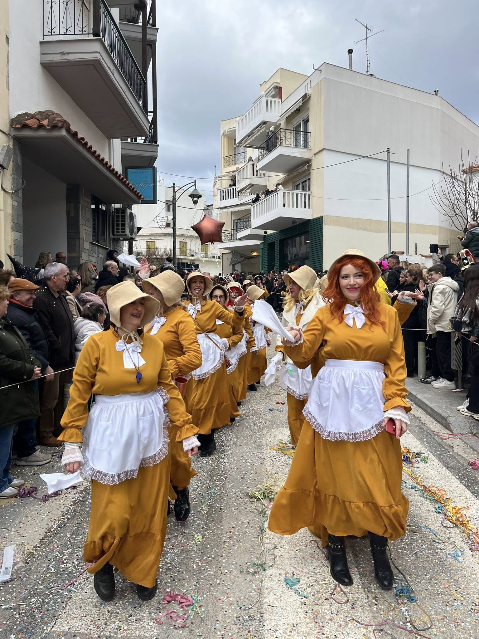 Πλήθος κόσμου κατέκλυσε το κέντρο της πόλης και παρασύρθηκε από τον παλμό και τη ζωντάνια των καρναβαλιστών. Πέντε πεζοπόρα τμήματα, τέσσερα πεζοπόρα με τροχήλατα και πέντε εντυπωσιακά άρματα έκλεψαν τις εντυπώσεις με τη δημιουργικότητα και τη φαντασία τους. Θέματα όπως «Ενεργειακή Αποκάλυψη», «Σαμουράι και Γκέισες», «Αρχαίοι Έλληνες» και «Γιούφτκους Γάμους», μαζί με πολλές ακόμη ευρηματικές εμπνεύσεις, χάρισαν γέλιο, χρώμα και σάτιρα.