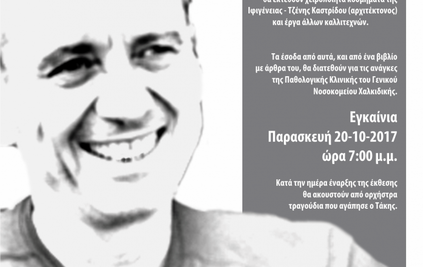 Η ομάδα πρωτοβουλίας φίλων του γιατρού Δημήτρη (Τάκη) Πετρίδη και ο Σύλλογος Καλλιτεχνών Εικαστικών Τεχνών Χαλκιδικής, διοργανώνουν εκδήλωση στη μνήμη του.