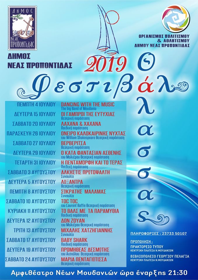To Φεστιβάλ Θάλασσας 2019 Δήμου Νέας Προποντίδας ανοίγει τις πύλες του την Πέμπτη 4 Ιουλίου και περιμένει να σας υποδεχθεί.