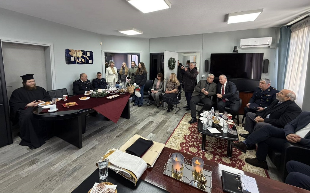 Ακολούθησε η πρωτοχρονιάτικη δεξίωση και η καθιερωμένη κοπή της βασιλόπιτας στο Διοικητήριο της Περιφερειακής Ενότητας Χαλκιδικής.