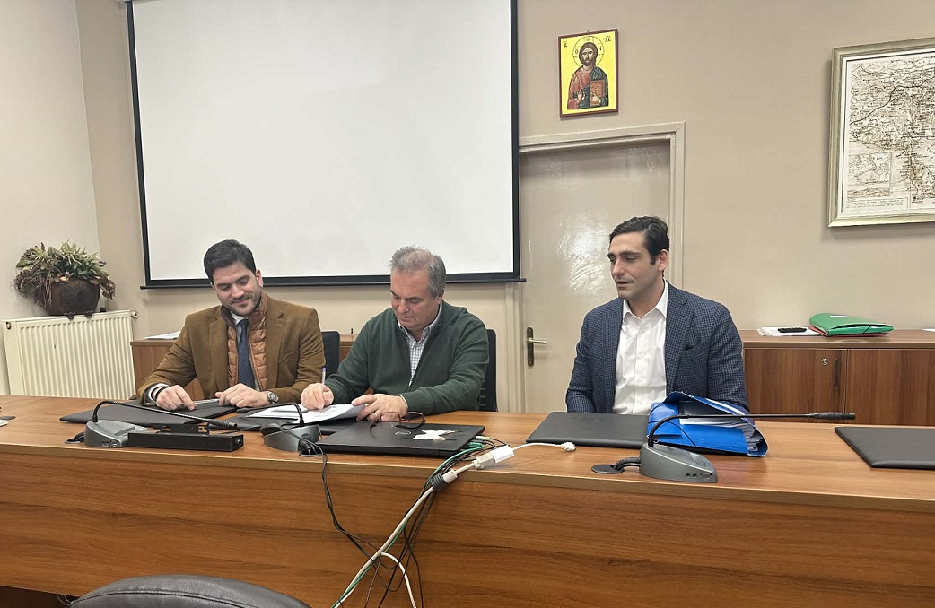 Υπεγράφη η σύμβαση κατασκευής του έργου «Ανέγερση Γενικού Λυκείου Νέων Μουδανιών», ένα έργο κομβικής σημασίας για την εκπαιδευτική υποδομή της περιοχής, από τον Δήμαρχο Νέας Προποντίδας, κ. Μανώλη Καρρά, και τον Διευθύνοντα Σύμβουλο της αναδόχου εταιρείας «Α.Τ.Ε.Σ.Ε. Α.Ε.», κ. Παύλο Σαραντόπουλο, παρουσία του Προέδρου της εταιρείας κ. Παναγιώτη Χουμπαυλή και της επιβλέπουσας μηχανικού του Δήμου κ. Βασιλικής Τσαβλή.